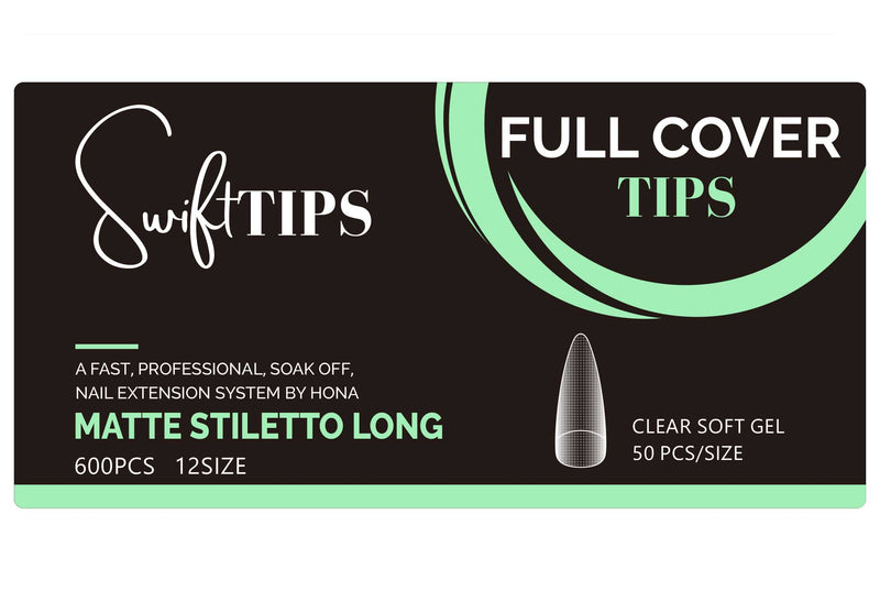 5. Product Specifications: Each box of Stiletto SwiftTips contains 600 tips in all shapes except for medium matte which has 750. For detailed information on sizes, quantities, and application methods, please refer to the information provided below.